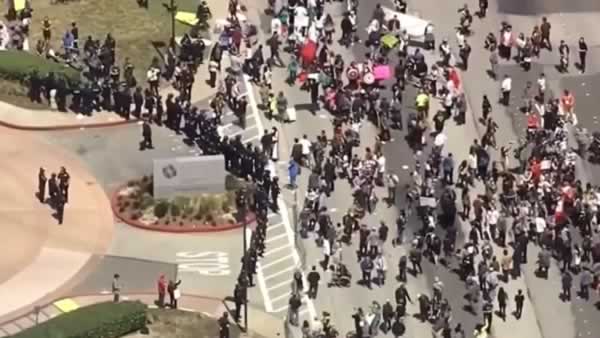 Burlingame Police Lt. Jay Kiely said the department had brought in officers from throughout San Mateo County to assist with today's event. He said the department had spoken to groups planning the protest and asked them to keep things peaceful.