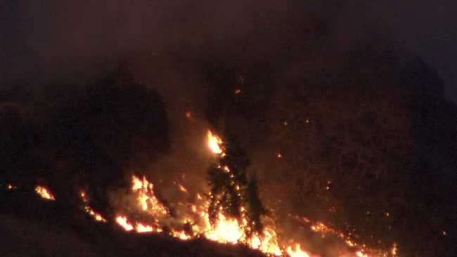 SKY7 was over the area Sunday morning when it spotted several spot fires on both sides of Interstate 80. Neighbors could be seen on a hillside hosing down their properties as the flames inched closer to their homes.