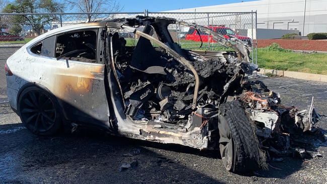PHOTOS: Tesla driver survives fiery Model X crash in Fremont
