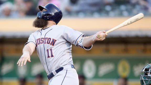 "It was fun to watch our guys respond to his continued damage at-bats," Houston manager AJ Hinch said. "They're taking his helmet off and rubbing it all over themselves and they're trying to get as close to him as they can. They want whatever he's eating, whatever he's doing during the games."
