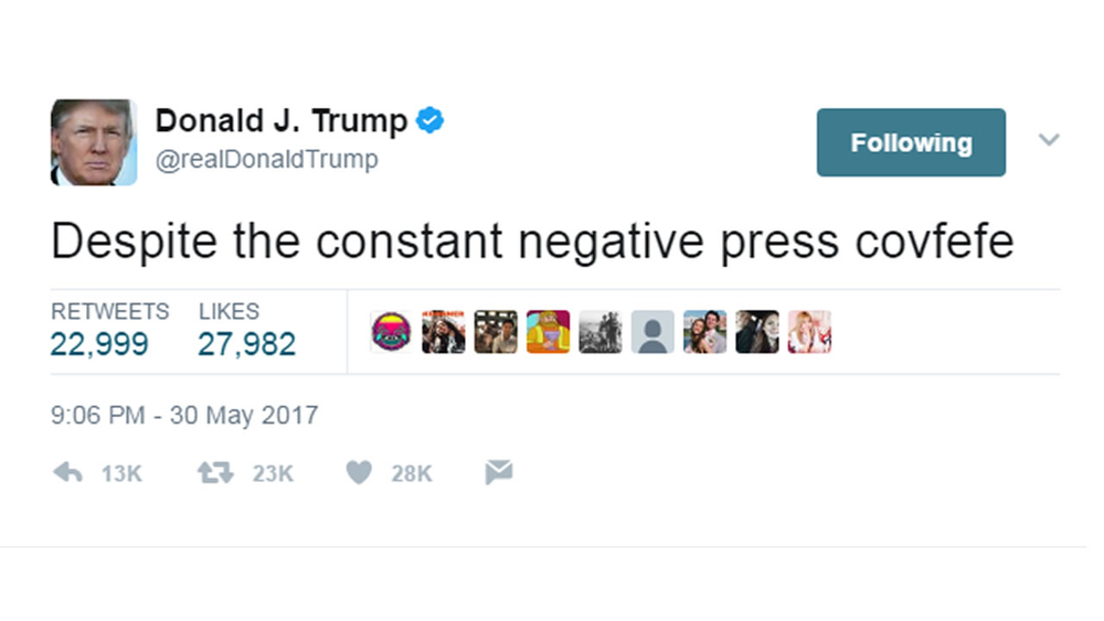 The tweet that started it all began in normal fashion, but the last word left people scratching their heads. "Despite the constant negative press covfefe."