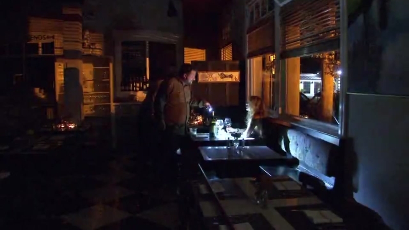 If you were to walk into All Seasons Bistro you would see nothing but candles and flashlight. When we walked into their kitchen and spotted an extra bin of ice they got very excited. They worked quickly to get that ice into the freezer because they've got about $10,000 worth of food for the restaurant inside-- meat, fish, truffles, produce, you name it.